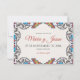 This Fiesta Colorful Flowers Botanical Spanish Wedding Save the Date design features a bold and intricate floral arrangement with vibrant red, blue, orange, and green flowers, creating an eye-catching symmetrical border at the top and bottom of the card. The floral clusters are framed by elegant black fern-like patterns, adding contrast and depth to the colorful blooms. The design combines traditional folk art elements with modern vibrancy, making it perfect for a festive and celebratory occasion like a wedding.