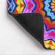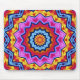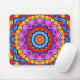 Rainbow colours decorate this custom design peace mandala shown on mousepad. Brighten up a dreary day with this colourful computer accessory with fiesta influences.