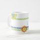 Chalkboard Flower design in blue, green, yellow, red on white background. Custom NAME in blue. Easy to personalise text, text colour, font. Great for ANY person, Fiesta, Southwest souvenir, Colourful morning coffee pick-me-up. Bright, Cheerful, Fun. Mix and match entire Fun Mug Collection by TMCdesigns.