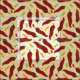 A festive and fun pattern of red chiles on a yellow background. Brightly coloured confetti and tiny flowers add a touch of fun to the elegant design. Background includes abstract blobs for dimension. Also comes in a pattern with green chiles. Matching products available.