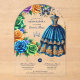 Fiesta Quinceanera Floral Butterflies Blue Gold Acrylic Invitations