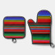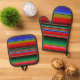 Fiesta Serape Mexican Stripe Pattern Blanket Oven Mitt & Pot Holder Set