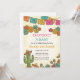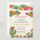 A fun and colorful 'Taco Bout a Baby' shower invitation background featuring hand-drawn doodle papel picado banners, a festive cactus with a sombrero, and marigolds. Perfect for a gender-neutral fiesta celebration.