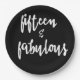 NewParkLane - Paper Plates, with fun quote 'Fifteen & Fabulous' in a trendy script typography, against a black background.