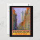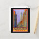 Vintage artwork of colourful rendering of Fifth Avenue in New York. Labelled "World's Greatest Shopping Street" and "Travel by Train"