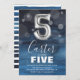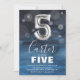 Fifth Birthday Silver Balloon | Blue Party Invitation