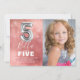 Fifth Birthday Silver Balloon | Pink Photo Party Invitation