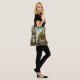 Tote bag featuring a fine art painting of an elegant lady in a surreal city scene with a cat. A parody on the fifties. Beautiful as a gift for a crazy cat lady.