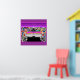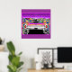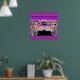 Whimsical modernistic psychedelic hippies type look at the icons of the fifties in neon colors of pinks, purples, reds, blues.