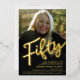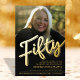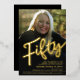 Fifty bold gold foil script text or your own foil colour. Personalise this 50th birthday party script photo birthday invitation with your own birthday party event details, and a photos of your birthday girl. Other years and matching items are available. © Original design by Sarah Trett for www.mylittleeden.com on Zazzle.