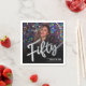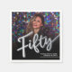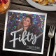 Fifty black and shiny silver metallic affect script text photo napkins. Personalise this 50th birthday party script photo birthday napkin with your own birthday girls name and party date, and a photo of your birthday girl. Other years and matching items are available. © Original design by Sarah Trett for www.mylittleeden.com on Zazzle.
