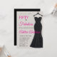 A Fifty and Fabulous elegant script, black, hot pink, and silver glitter modern 50th birthday invitation that you can personalise and send out for your fiftieth birthday party celebration. The words "Fifty and Fabulous" are set on a silver glitter background, with popular stylish hot pink and black script font typography, placed aside an elegant, sophisticated, and glamourous black glitter strapless evening gown. Have fun customising the name, date and time, location, and RSVP with the editing tool.