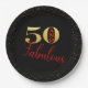 Fifty And Fabulous Black Red Gold Glitter Birthday Paper Plate