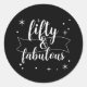 Fifty and Fabulous Black White Design Classic Round Sticker