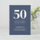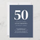 50 Fifty and Fabulous minimal navy blue and white modern 50th birthday invitation that you can personalize and send out for your fiftieth birthday party celebration. The words "Fifty and Fabulous" are set using popular font typography - modern, minimal, classic, timeless. The text colors can be changed using the edit menu.