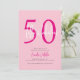 Fifty and Fabulous script minimal blush pink, hot pink white and black modern 50th birthday invitation that you can personalize and send out for your fiftieth birthday party celebration. The words "Fifty and Fabulous" are set using popular script font typography. The text colors can be changed using the edit menu.
