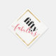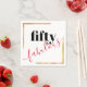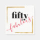 A simple bold statement in black and red text framed by a broken gold brush stroke. This typography only 50 and Fabulous napkin is stylish and modern.