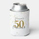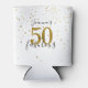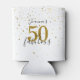Elegant chic fifty and fabulous personalised birthday celebration can cooler featuring gold stars confetti with chic black and gold typography.
