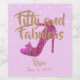 Fifty and Fabulous girly sparkly hot pink high heel shoe with gold text on wine label. Pastel pink background with white dots. Fill out your information. Feminine, festive and elegant.
