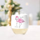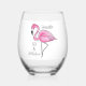Fifty and Fabulous Pink Flamingo Custom Stemless Wine Glass