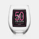 Fifty and Fabulous Script 50th Birthday Stemless Wine Glass
