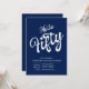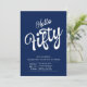 Fifty Blue White Modern 50th Birthday Invitation
