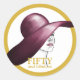 Add a touch of elegance to your milestone celebration with these Fifty & Fabulous custom round stickers! Featuring a sophisticated gold frame that beautifully nests an illustration of a stylish woman in a dark magenta and mauve hat, these chic stickers are the perfect finishing touch for your birthday event. The gold typography spells out "FIFTY and fabulous", with customisable options to make it uniquely yours. Use them for party favours, envelope seals, gift bags, or décor—wherever you need a little extra glamour for your fabulous celebration!