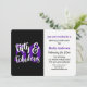 This fun, modern birthday card design for the fabulously fifty birthday girl was designed in black, white and purple. This typography-rich design features a modern, fun, fat and curvy script font from my collection. The "Fifty & Fabulous" element is a graphic, rendered in white. The "50" underneath is a separate text element that lets you change your font, colour, or even remove that layer if you like. Each text detail that needs to be changed for your own DIY needs are set up with template fields you can easily update: name, date, party details and RSVP elements. Please don't hesitate to reach out if you have special requests or need customising help.