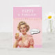 A fun 50th happy birthday card with a retro lady design, "Fifty & fabulous, I'll drink to that!" and a pink polka dot background. You can change the text inside to suit your preference or delete it altogether.