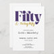 Celebrate a fabulous milestone with this Fifty & Feeling Nifty 50th Birthday Invitation, featuring bold purple and gold typography on a clean white background. The phrase “Fifty & Feeling Nifty” is part of the fixed design and cannot be edited, while all other text can be personalized directly on Zazzle. Perfect for a modern and elegant 50th birthday celebration that captures fun, confidence, and style, customize your details in minutes and make it an unforgettable night.