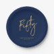 Fifty | Gold & Navy Blue Lettering 50th Birthday Paper Plate