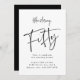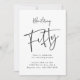 Adult birthday for a fifty year old! Brushy style hand written font reads “fifty” with editable details