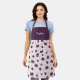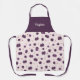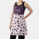 An apron with a pattern of fig on a light pink background and a customisable first name above on a purple background. A lovely gift for a friend who loves fruits. It could also be used in a store when you're working!