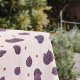 A tablecloth with a pattern of fig on a light pink background and purple polka dots: a lovely gift for a person who has just moved or for your home decoration!