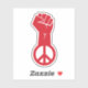 This design features a raised red fist attached to a peace symbol.