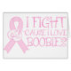 Breast cancer awareness shirts, mugs, tote bags, and more with a pink awareness ribbon, boxing gloves, and the saying, I fight cause I love b o o b i e s. Show your support for breast cancer awareness with these cool t-shirts.