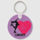 Figure Skater personalised key chain with your name, purple & Pink love Heart.