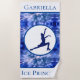 Figure Skating "Ice Princess" Personalised Beach Towel. This design has a metallic - hologram look background with a beautiful blue faux sparkle figure skater silhouette in the centre. Above this you can personalised the name to that of your figure skater, underneath says Ice Princess.