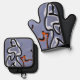 Figure with Feline: Abstract Blue, Orange, B & W Oven Mitt & Pot Holder Set