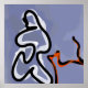 Abstract Print of Seated Figure and Cat with Complementary and Monochromatic Blue Colour Schemes including Black and White