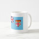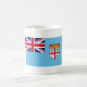 The Fijian flag is a light blue ensign with the shield-of-arms in the fly. The used colours in the flag are blue, red, white. The proportion of the Fijian flag is 1:2. The Flag of Fiji was adopted in 1970. The first use of the current flag design was in 1924. The last change to the current Fijian flag design was in 1970.