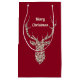 Here we have a lovely gift bag that features a cream coloured filigree deer on a deep red background. The words "Merry Christmas" can be removed or customised for your recipient. This bag is a match to other gift bags, wrapping paper, tissue papers and a greeting card! It will make a perfect addition to your gift for your friends and family this holiday season.