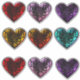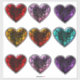 A set of 9 Filigree Goth Heart vinyl stickers in blood red, purple, pink, blue, and gold