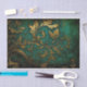 Distressed and antiqued, green and gold filigree design.