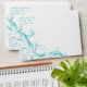 This 5x7 envelope, perfect for a wedding invitation, is pretty with a delicate scroll work design in a beautiful Blue Curacao on white. It gives a bright, clear and crisp look that is pretty, romantic, elegant and classic, while still modern with a hint of vintage, perfect for the ocean/beach wedding. This is part of a wedding set collection that has both white swirls on a turquoise/aqua background, and turquoise swirls on a white background, so you can mix and match to your liking. The background colour is customisable... just click on the "customise it" button to change the colour. What is your favourite colour with turquoise blue?
