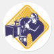 vector illustration of film crew cameraman shooting filming with movie camera viewed from front set inside diamond shape set inside circle done in retro style.