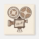 Cinematography magnet template. Old movie projector, hand drawn illustration. Nice gift idea for film director, camera operator, film producer, actor / actress, screenwriter etc.