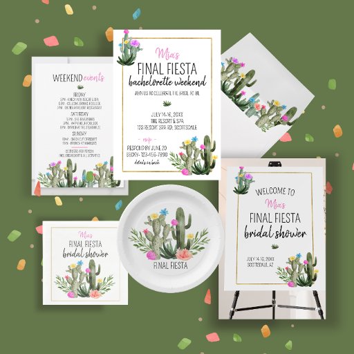 Order this Final Fiesta personalized can cooler as a gift for your besties or to throw the ultimate bachelorette party. Easily personalize it with your bride or bridesmaid's name. You can also change the type of party including bridal shower, bachelorette party, wedding shower, etc. You can change the color of the font in the personalize this design section. Check out this and other coordinating products in the 'Final Fiesta' collection at PetalsandStemsEvents.