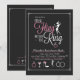 A trendy invitation design in pink and white on black, for a bachelorette party. Featuring a girl silhouette dancing, heels, a cocktail and of course the ring. (Vecteezy.cm bachelorette party by nightwolfdezines). The card is easy to customise with your wording, font, font colour, paper shape options and choice of six paper types.