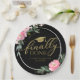 Finally Done Hot Pink Floral Grad Party Black Paper Plate